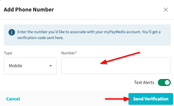 *If you request text alerts under your Communications Preferences, you should expect to receive a text with a numeric code. You will need to enter the numeric code from that text within your myPayMedix account to verify your phone number.