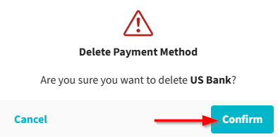 *Please note: You will not be able to delete the payment method in which is set as your "default". In order to delete this payment method, you will need to make another payment method the default first.